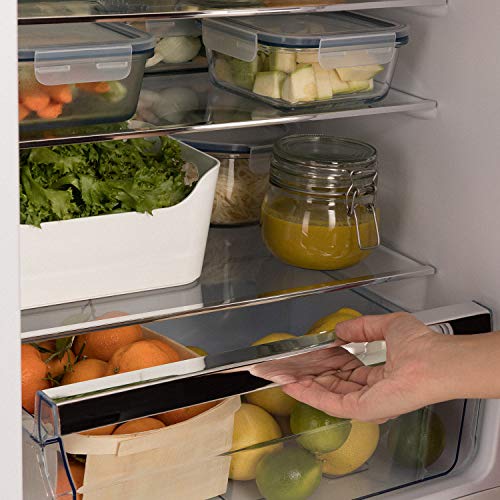 👌|PRAKTISCH EN FUNCTIONEEL| Planken en vakken om u te helpen uw eten en drinken te organiseren. Hij beschikt over 3 verwisselbare planken van gehard glas, één vaste, fruit- en groentelade, 3 verwisselbare zijvakjes.