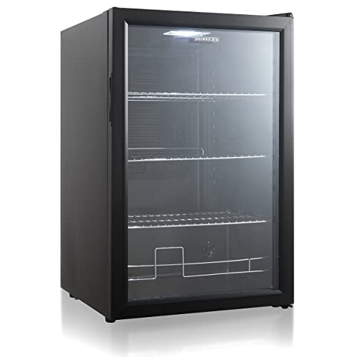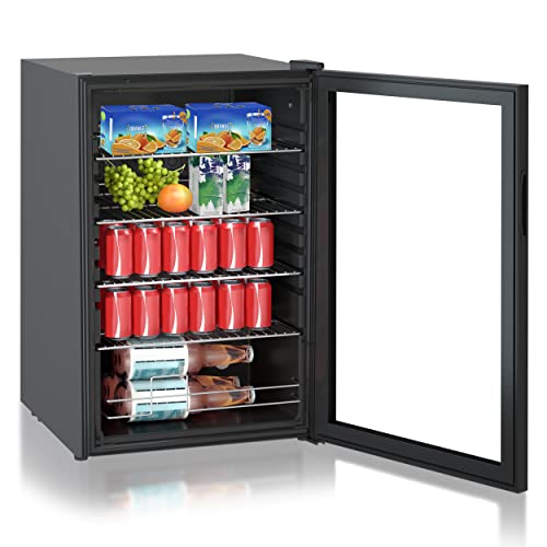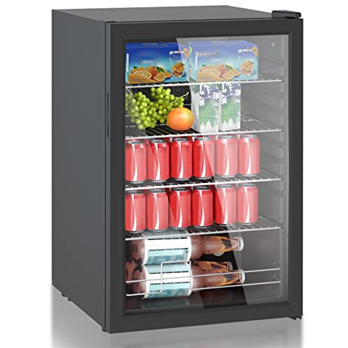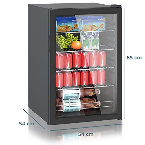 HEINRICHS Drankkoelkast, mini-koelkast met glazen deur, compact en stil: 41 dB, led-binnenverlichting, perfect geschikt voor kantoor, camping, tuin, 5 tot 18 °C, zwart (115 liter/4 planken/41 db)