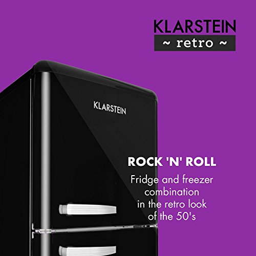 Klarstein Audrey Retro – koelkast, zuinig en milieuvriendelijk, 0 tot 10 ° C, 250 liter inhoud, 194 liter koelkast, 56 liter vriezer, zwartgrijs